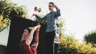 Besides their high-class show-acts, the Duo Jordanella has created a 20. min program for outdoor shows and street festivals. This show blends Diabolo with Contortion and Juggling with Handstand acrobatics. Combining strength, elegance, and precise teamwork, their performance fuses different circus arts into an engaging spectacle that stops passersby in their tracks.